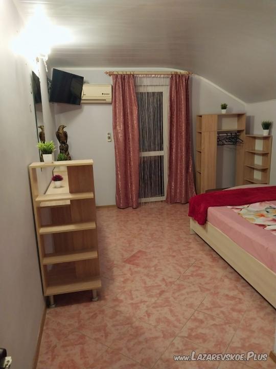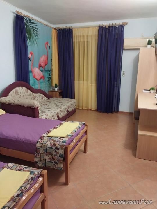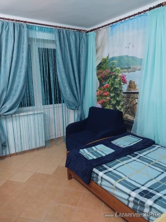Номера в доме категории стандарт и комфорт вместимостью от 2 до 4 человек. Все номера с кондиционерами, телевизорами, Wi-Fi, балконами и видами на море и горы. Кухня-столовая с холодильниками, МВП, посудой и стиральной машиной. Предоставляем бесплатные парковочные места на 5 машин. Напротив дома спортивная и игровая площадки для детей. Во дворе два отдельных домика: 2-х местный стандарт и 2-х местный комфорт. Также дополнительно для всех проживающих два душа и два туалета, оборудованные места для отдыха, качели, барбекю с мангалом. Столовая находится в соседнем доме, от которой ходит маршрутка до магазина «Марка» и обратно. До центра 2 км, до ж/д вокзала 3,5 км, до моря 406 м пешком с выходом на пляж «Касабланка» и «Одиссей», рядом пляж «Лагуна» и «Чайка». Встречаем и провожаем с ж/д вокзала бесплатно.