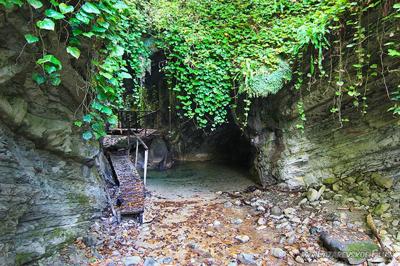 Грот в начале туристического маршрута в каньоне Прохладном. Образован карбонатными породами, принесёнными за долгое время водой, стекающей в этом месте со стен каньона, создавая впечатление, что две противоположные стены каньона сплелись воедино. Видимо поэтому его и назвали грот Любви и Верности.