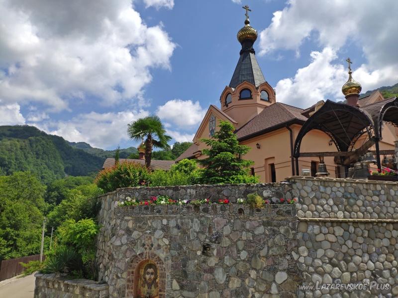 Проект мужского монастыря разработал сочинский архитектор Борис Бабаков. Задумывался он по подобию афонских монастырей и реконструирован из здания столовой чайсовхоза. В строительстве принимали участие строители из Сербии, некоторые из которых оставили память о себе в виде своих имён на мраморных досках — Предраг, Милош, Ненад, Лубиш и другие.