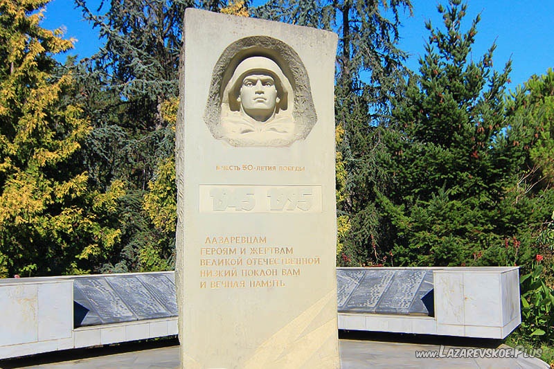 Памятник лазаревцам героям и жертвам Великой Отечественной Войны, низкий поклон вам и вечная память — так гласит надпись на памятнике в городском парке посёлка Лазаревское, расположенном на небольшой площади рядом с его главным входом.