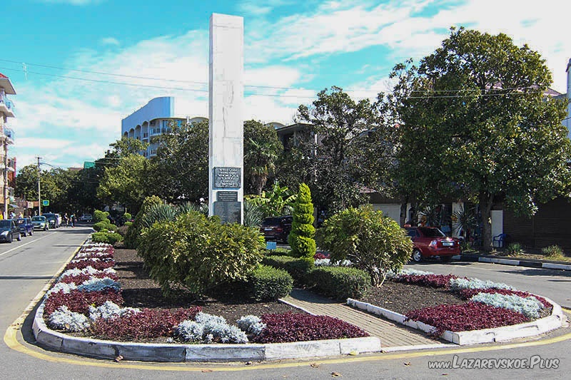 Стела, возведённая на набережной Лазаревского, в память о защитниках черноморского побережья Кавказа.