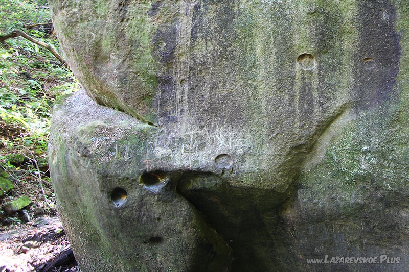 На двух из четырёх сторон одной из глыб скалы Два брата в Волконском ущелье имеются довольно интересные следы.