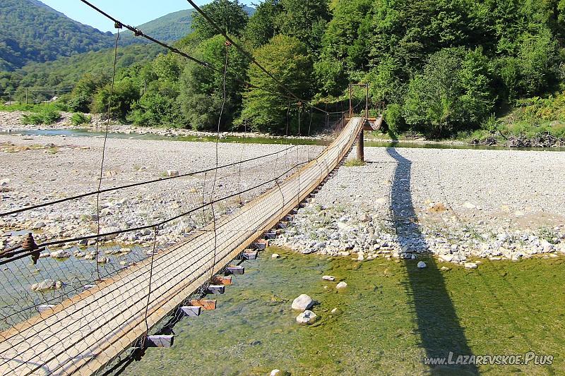Девяностометровый подвесной мост через реку Псезуапсе. По мосту добираются до небольшого селения Ходоники. Также, через этот мост пролегает один из маршрутов к водопаду Игристому и Тигровой пещере.