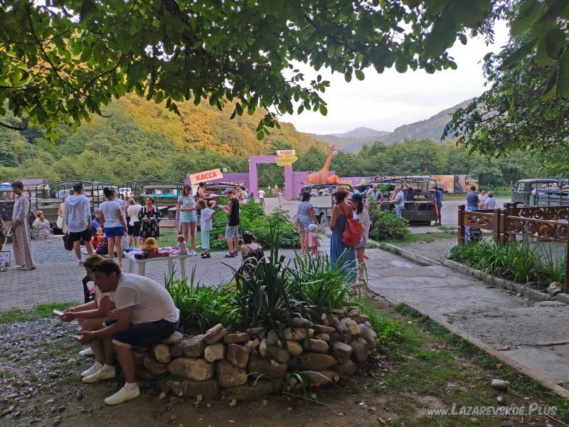Ездили на 33 водопада. Немного подождали автобус, минут двадцать, но впечатление это не испортило, экскурсовод пару раз звонила, пока мы ждали и просила еще немного подождать, так как в Лазаревской сплошная пробка. Несмотря на то, что машин на трассе было много, доехали быстро. Первым делом посетили Тюльпановое дерево. Серьезный экспонат, надо сказать, всей семьей не обхватишь. На чайной плантации получились самые интересные фотографии, солнечные, красочные. На самих водопадах попробовали и купили вино. Планируем ещё съездить куда-нибудь на дольмен.