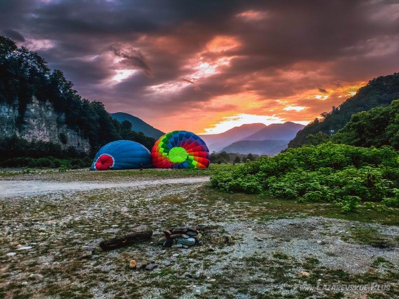 Когда вы бронируете полет, то слышите в трубке: “Взлетаем в 5:30 утра, встречаем рассвет в корзине шара”.; Вы смотрите карту: от центра Сочи ехать час, от Красной поляны — полтора, столько же от Лазаревского. И в мыслях даже самого фанатичного жаворонка тоненький голосок начинает тихонько нашептывать: “Ох, рано как. Может лучше выспимся?”