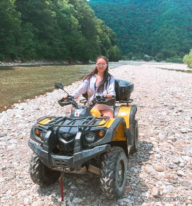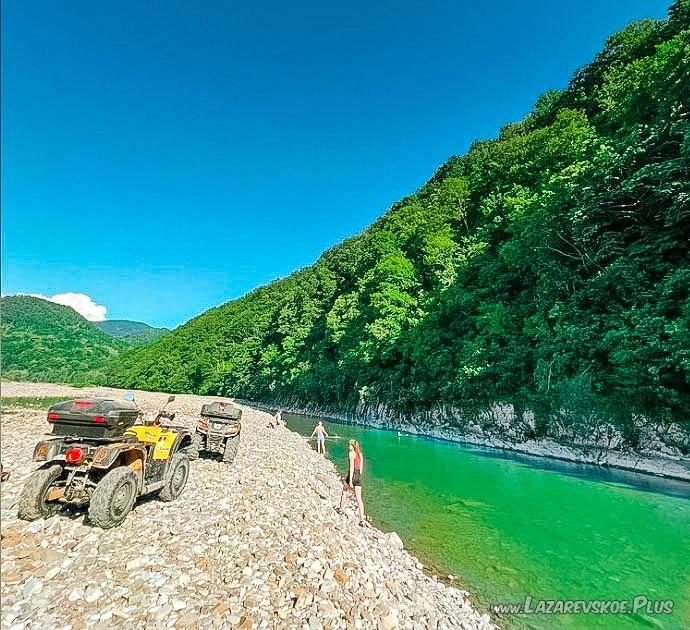 Время непосредственно поездки на квадроцикле - 1,5 часа. Едем по речке Аше, с удовольствием заезжая в места, где можно немного погарцевать. Далее поднимаемся в гору и выезжаем на поляну, где выжимаем из квадроцикла побольше скорости, затем едем на вторую поляну, где по пути встретим конюшню. Там ещё немного покатаемся и направимся к реке, по которой с брызгами направимся к месту купания. После купания разворачиваем наши квадроциклы в обратную сторону и возвращаемся туда, где нас ждут горячие чебуреки и вино (по желанию, оплачивается отдельно).