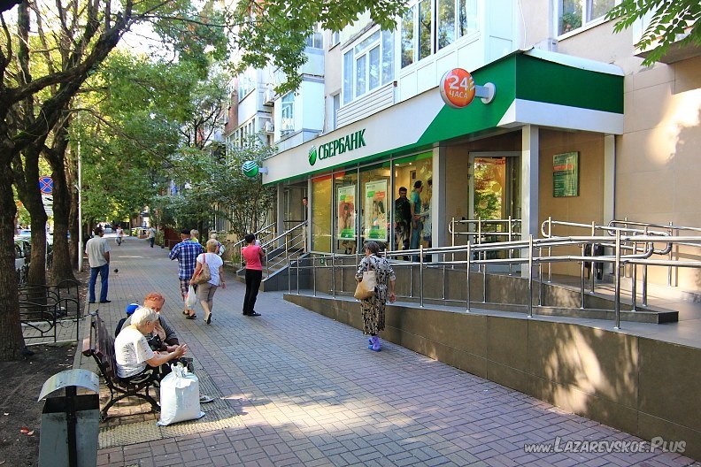 В Лазаревском расположены два отделения Сбербанка. На улице Победы и улице Павлова.