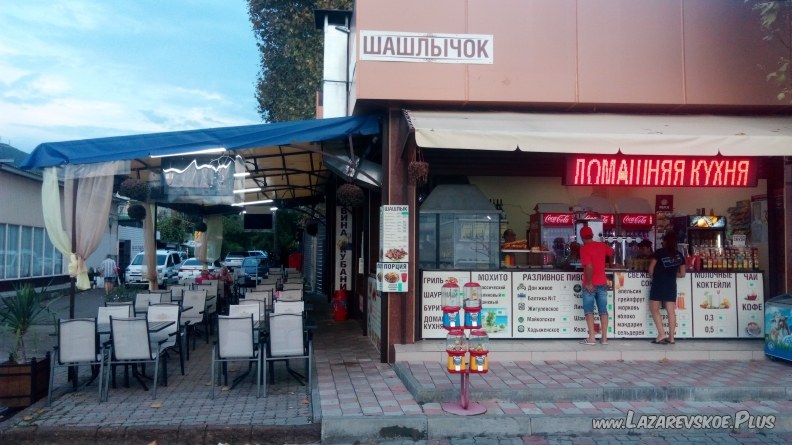Домашняя кухня, гриль, шаурма, шашлык, чай, кофе, мохито, молочные коктейли, свежие соки, разливное пиво.